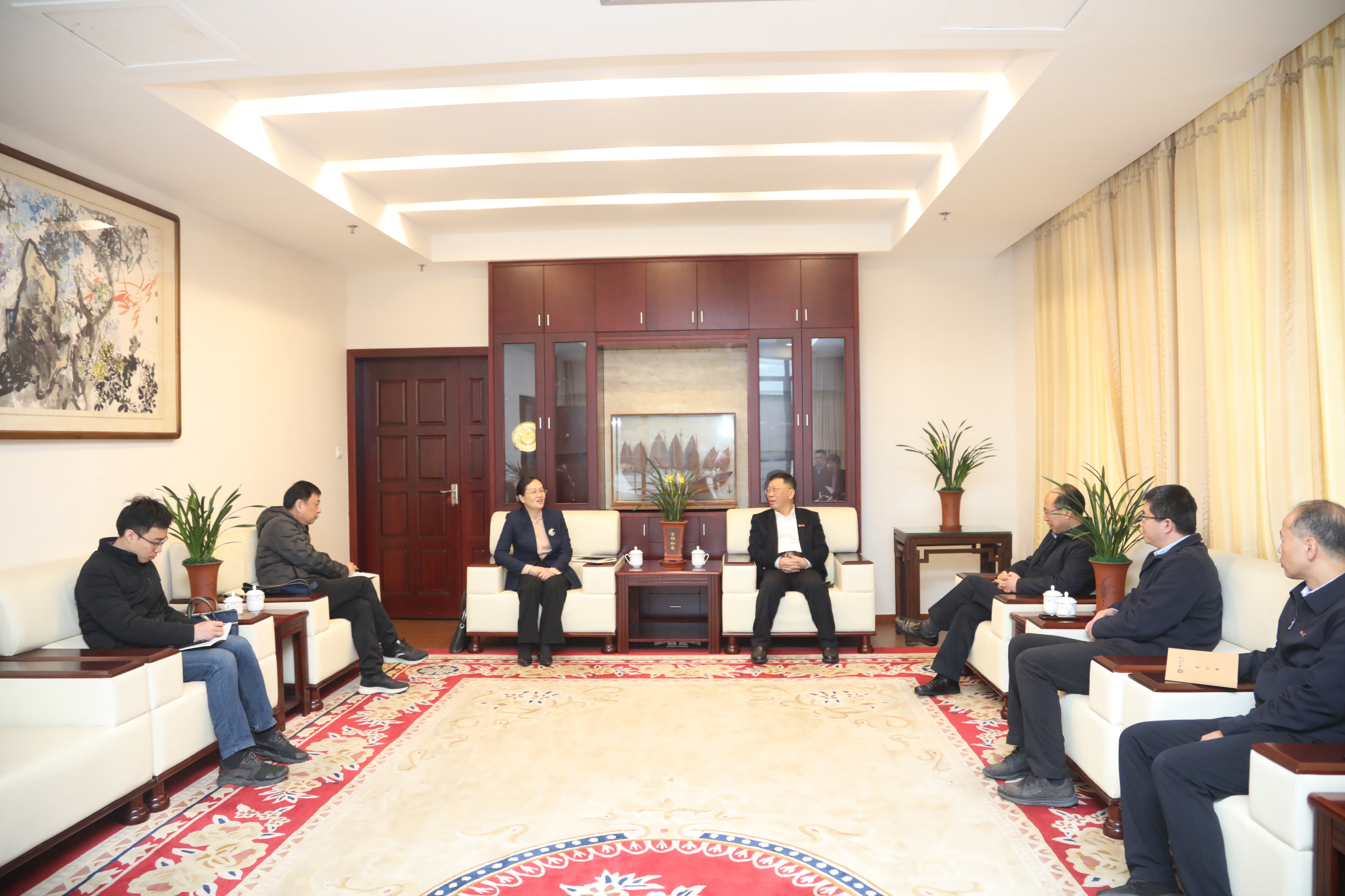 新闻中心讯/1月20日上午,泉州市副市长汪志红一行来bat365官方官网调研,bat365官方官网党委书记陈国龙、副校长王心晨在旗山校区行政南楼会见客人并举行座谈。